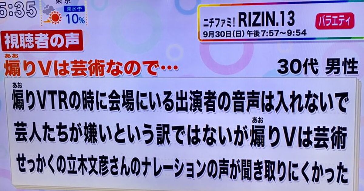 Rizinの煽りvに出演者が横で音声入れることへの批判が週刊フジテレビ批評で取り上げられる Togetter